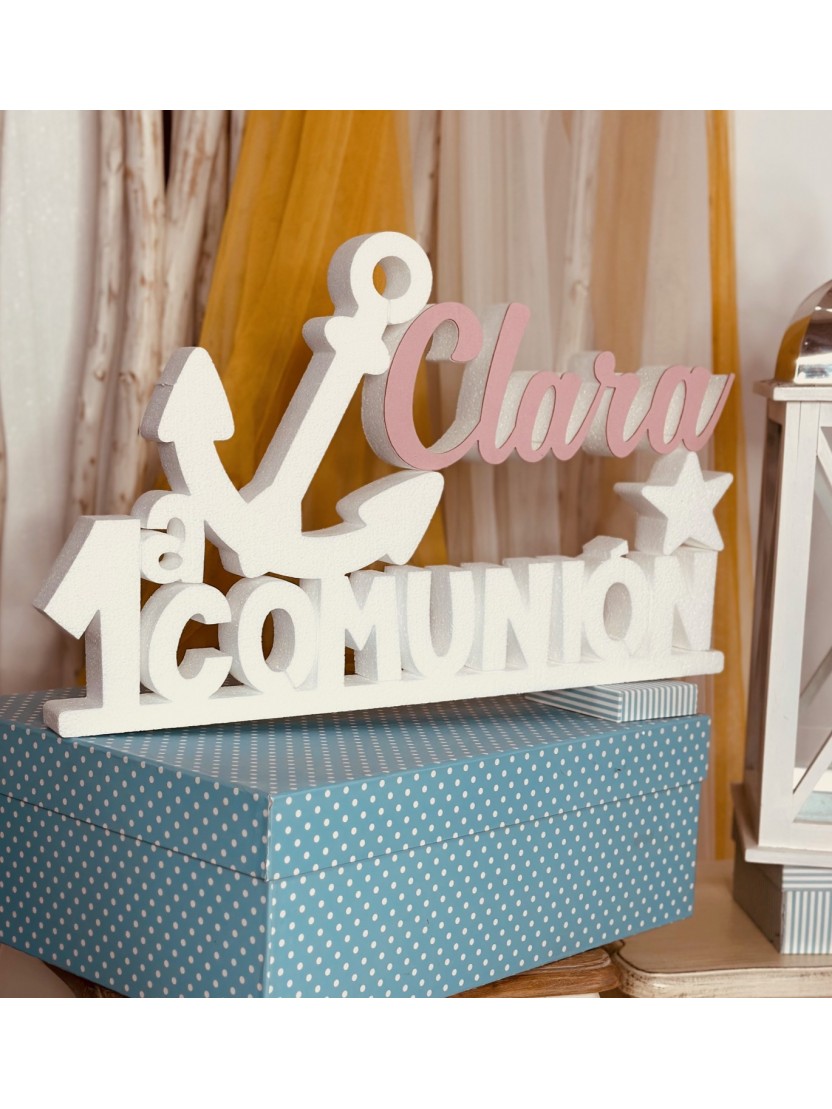 Primera Comunión nombre rosa ancla